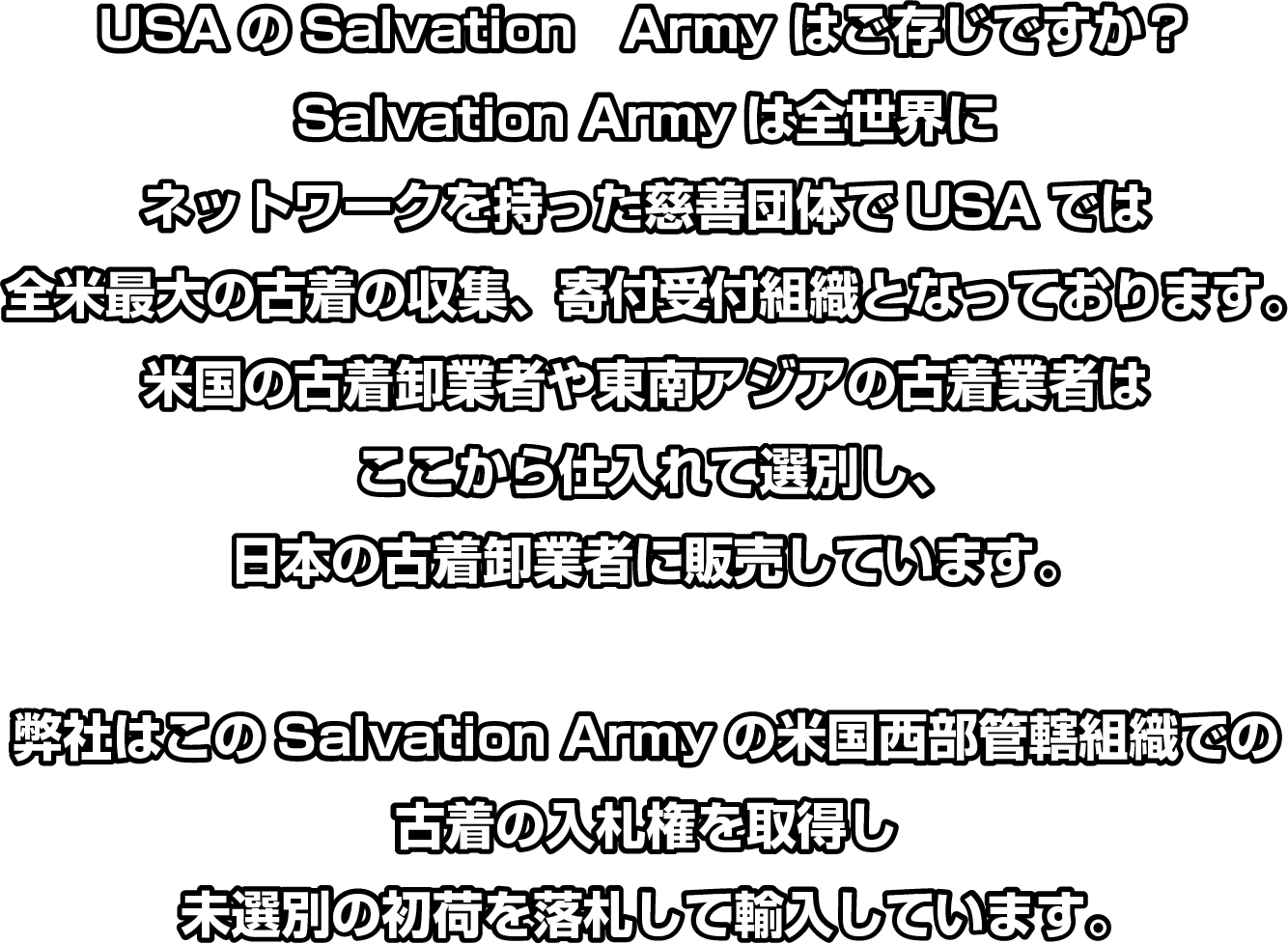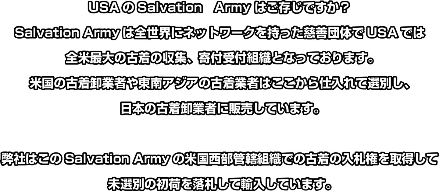 サルベーション・アーミーもジャンル毎に仕分けしたベールは世界初となり、弊社が初輸入の新たな550kgベールとなります。
